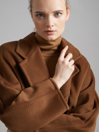 DETAILS An icon yet object of modern and contemporary design. The 101801 coat was first designed by Anne-Marie Beretta in 1981, and since that moment, has become the most widely recognised Max Mara garment worldwide. The perfect proportions and oversized kimono-sleeve cut, ensure that this garment remains timeless. Wool and cashmere beaver cloth Embellished with tailored stitching Lapel collar The turn-up kimono sleeves can be adjusted according to the length of your arm Welt pockets Matching internal belt Custom lining with a branded label The oversized fit is also ideal for wearing as a blazer Horn buttons Length: 120 cm/47 inches Comes with a wooden hanger and branded canvas garment bag COMPOSITION AND CARE Fabric 90% virgin wool, 10% cashmere; lining 98% cupro, 1% metallised fiber, 1% viscose. Do not wash; do not bleach; do not tumble dry; cool iron; professionally dry clean perchloroethylene - mild process; do not wet clean.; do not iron the buttons.; protect buttons before washing.; contains non-textile parts of animal origin. Distributed by Max Mara S.r.l., registered office in Reggio Emilia (Italy), Via Giulia Maramotti 4, 42124 (IT)