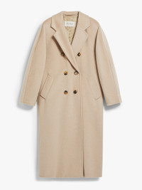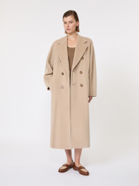 DETAILS An icon yet object of modern and contemporary design. The 101801 coat was first designed by Anne-Marie Beretta in 1981, and since that moment, has become the most widely recognised Max Mara garment worldwide. The perfect proportions and oversized kimono-sleeve cut, ensure that this garment remains timeless. Wool and cashmere beaver cloth Embellished with tailored stitching Lapel collar The turn-up kimono sleeves can be adjusted according to the length of your arm Welt pockets Matching internal belt Custom lining with a branded label The oversized fit is also ideal for wearing as a blazer Horn buttons Length: 120 cm/47 inches Comes with a wooden hanger and branded canvas garment bag COMPOSITION AND CARE Fabric 90% virgin wool, 10% cashmere; lining 98% cupro, 1% metallised fiber, 1% viscose. Do not wash; do not bleach; do not tumble dry; cool iron; professionally dry clean perchloroethylene - mild process; do not wet clean.; do not iron the buttons.; protect buttons before washing.; contains non-textile parts of animal origin. Distributed by Max Mara S.r.l., registered office in Reggio Emilia (Italy), Via Giulia Maramotti 4, 42124 (IT)