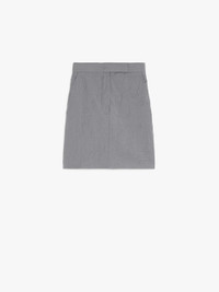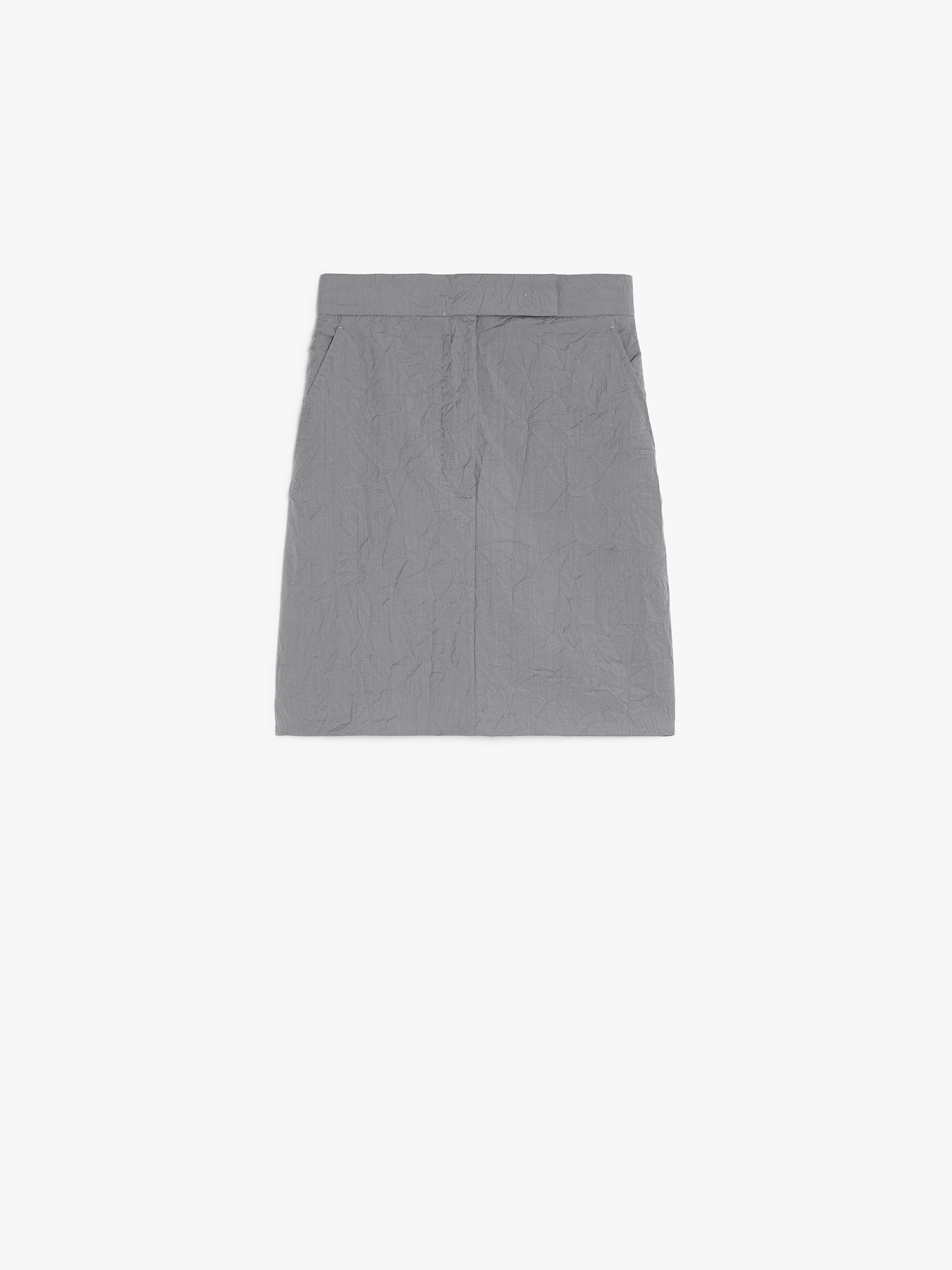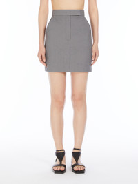 DETAILS Short, close-fitting skirt made of pure wool cloth. Lined garment with a characteristic crumpled texture, inset pockets on the sides and welt pockets with buttons at the back. Finished with central slit at the back, the garment fastens with a wide waistband tab, zip fly and hook. COMPOSITION AND CARE Fabric 100% virgin wool; lining 56% viscose, 44% cotton. Do not wash; do not bleach; do not tumble dry; cool iron; professionally dry clean perchloroethylene - mild process; do not wet clean.; do not iron the buttons.; protect buttons before washing.; when ironing, take care not to flatten the wavy look of the fabric.; contains non-textile parts of animal origin. Distributed by Max Mara S.r.l., registered office in Reggio Emilia (Italy), Via Giulia Maramotti 4, 42124 (IT)