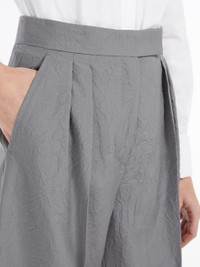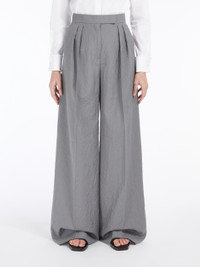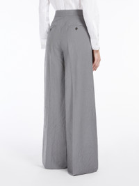 DETAILS Wide leg trousers, made of pure wool cloth with a characteristic crumpled texture. This design features a wide-leg silhouette, double pleats at the front of the waist, side slant pockets and buttoned welt pockets at the back. Fastened with a wide waistband tab, zip fly and small hook. COMPOSITION AND CARE 100% virgin wool. Do not wash; do not bleach; do not tumble dry; cool iron; professionally dry clean perchloroethylene - mild process; do not wet clean.; do not iron the buttons.; protect buttons before washing.; when ironing, take care not to flatten the wavy look of the fabric.; contains non-textile parts of animal origin. Distributed by Max Mara S.r.l., registered office in Reggio Emilia (Italy), Via Giulia Maramotti 4, 42124 (IT)