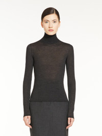 DETAILS Turtleneck jumper made of luxurious lightweight pure cashmere yarn. The seamless style is distinguished by a fitted silhouette, high neck and long sleeves. Ribbed trim. Zip fastening at the back neck. COMPOSITION AND CARE 100% cashmere. Hand wash cold; do not bleach; do not tumble dry; flat drying in the shade; cool iron; professionally dry clean perchloroethylene - mild process; do not wet clean.; iron with a cloth between.; using neutral detergent. Distributed by Max Mara S.r.l., registered office in Reggio Emilia (Italy), Via Giulia Maramotti 4, 42124 (IT)