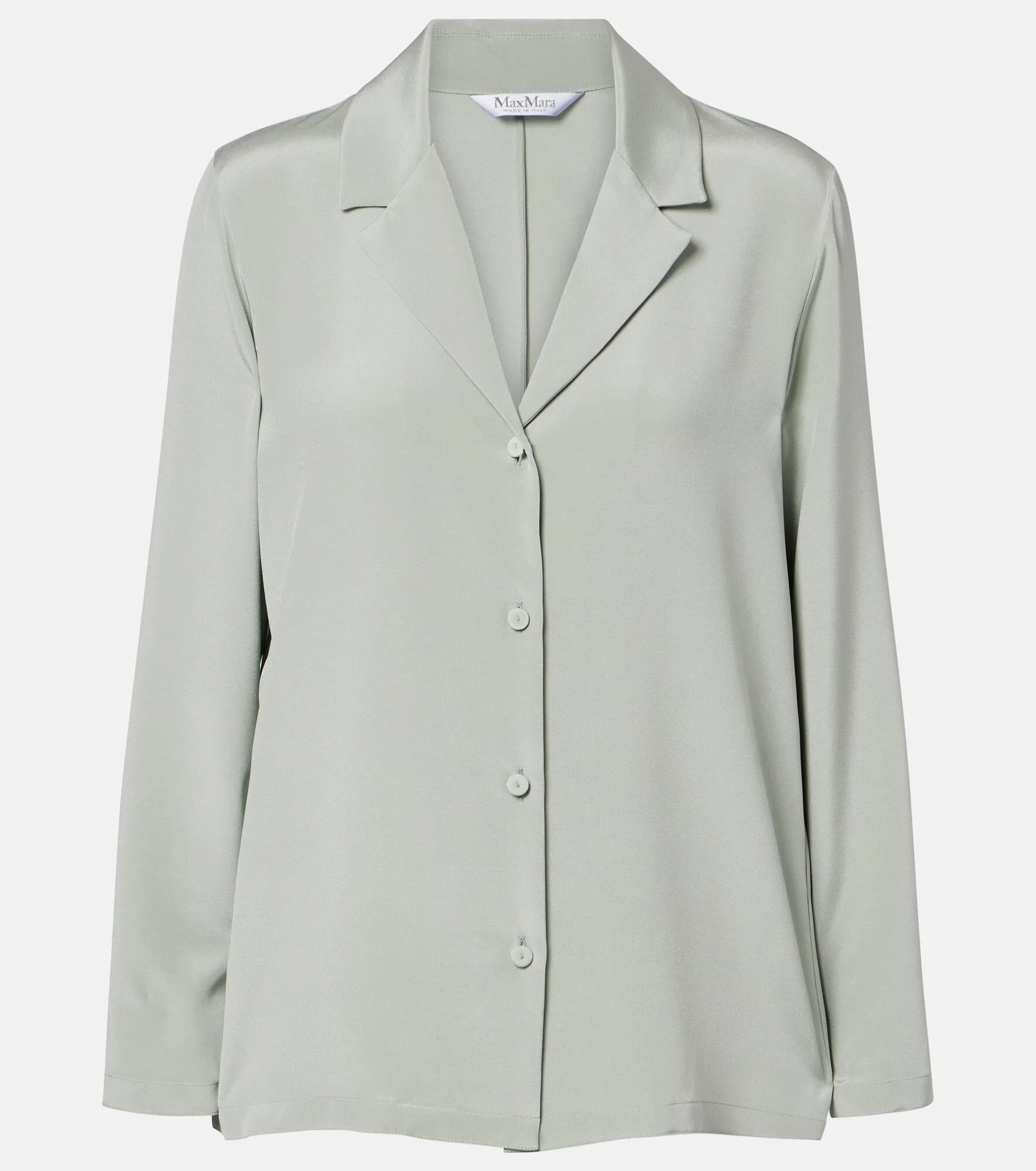 Boasting a rich manufacturing history, Max Mara represents the quintessence of Italian sophistication and expertise. The Aedo shirt is cut from lustrous silk-blend satin into a relaxed silhouette. Product Details - Material: 91% silk, 9% elastane - Care instructions: dry clean - Made in Italy - Color: green - Designer color name: Linfa - Closure: buttoned front - Cuff: buttoned - Item number: P01152534 Size & Fit - True to size - Straight fit - Non-stretchy fabric - Falls below the hip - The model seen in the picture is 178cm-5'10" and wearing a size DE 34