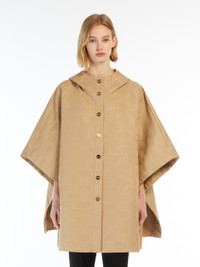 DETAILS Midi cape in water-repellent fabric with all-over M Monogram jacquard motif, featuring a poncho silhouette and double-lined hood. Voluminous style with side snap buttons, which create a wide, short-sleeved effect when closed. Completed by side welt pockets and straight hem. Logo snap-button front fastening. COMPOSITION AND CARE 100% polyester. Do not wash; do not bleach; do not tumble dry; cool iron; professionally dry clean perchloroethylene - mild process; do not wet clean.; wash the garment while it is fastened.; turn the articles inside out before washing. Distributed by Max Mara S.r.l., registered office in Reggio Emilia (Italy), Via Giulia Maramotti 4, 42124 (IT)