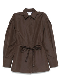 chocolate brown concealed front button fastening tied waist long puff sleeves buttoned cuffs - Color: BROWN - Made in: Italy - Designer Style ID: AFFARI 644 002 Composition and care Silk: 45.0%, Linen/flax: 55.0%