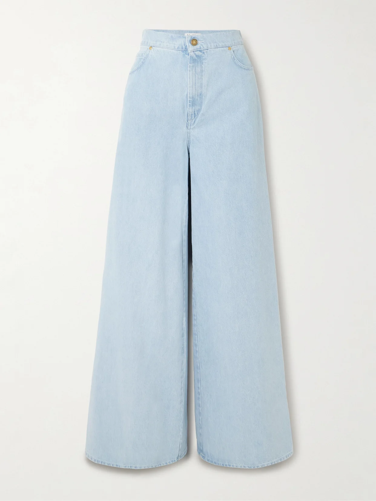 Max Mara's 'Affari' jeans have a column-like silhouette that has an elongating effect. They're cut from pure cotton-denim in a high-rise, wide-leg shape and detailed with chevron-stitched pockets and a logo patch on the back.
