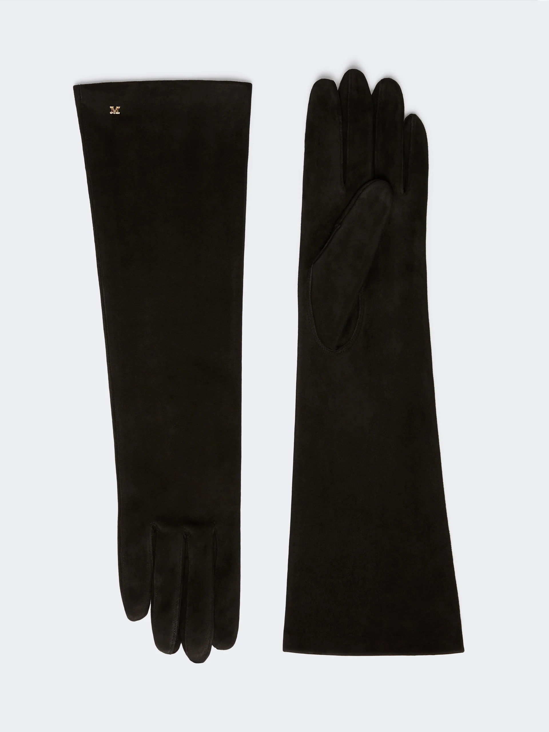 DETAILS Long gloves, customised with a small metal M Monogram at the edge. Gloves in soft lambskin nappa leather Suede texture Lined COMPOSITION AND CARE Style in lamb leather; lining 100% polyamide. Do not wash; do not bleach; do not tumble dry; do not iron; do not dry clean; do not wet clean.; do not wash or dry clean by fabric methods. clean only by leather and fur specialists. Distributed by Max Mara S.r.l., registered office in Reggio Emilia (Italy), Via Giulia Maramotti 4, 42124 (IT)