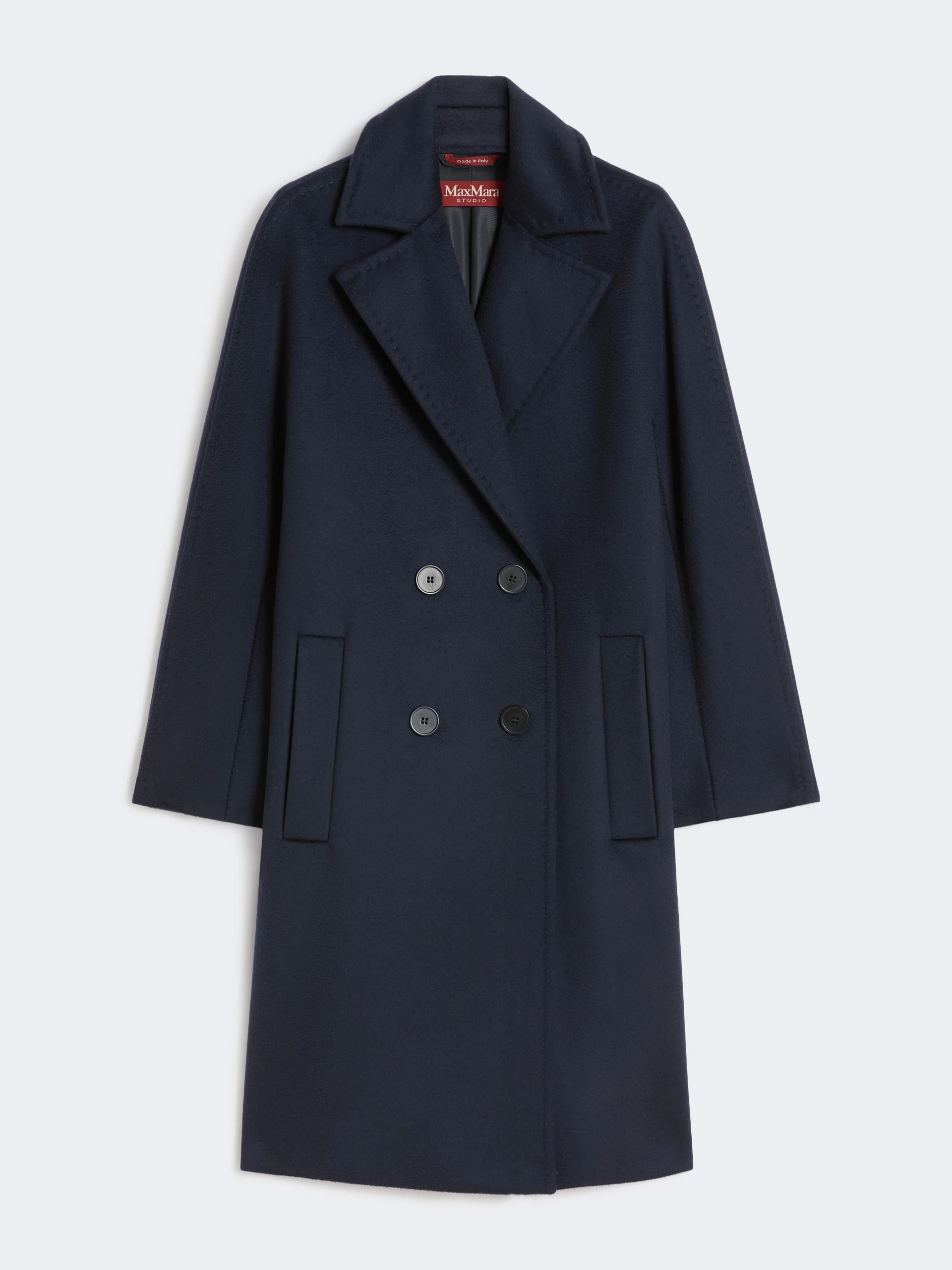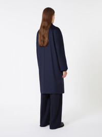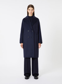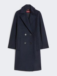 DETAILS Defined by its tailored construction and masculine-inspired lines, this women's double-breasted coat features a slightly oversized silhouette enhanced by kimono sleeves that amplify its volume. Coat in wool broadcloth fabric Slightly oversized fit with a masculine-inspired silhouette Lapel collar Long kimono sleeves Double-breasted button fastening Welt side pockets, fully lined model COMPOSITION AND CARE Fabric 100% virgin wool; lining 100% viscose. Do not wash; do not bleach; do not tumble dry; cool iron; professionally dry clean perchloroethylene - mild process; do not wet clean. Distributed by Max Mara S.r.l., registered office in Reggio Emilia (Italy), Via Giulia Maramotti 4, 42124 (IT)