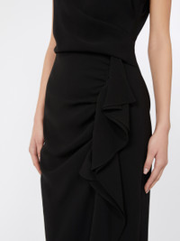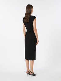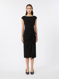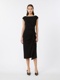DETAILS Midi dress with high-waisted sarong skirt and asymmetrical flounce on the front. - Lightweight cady dress - Fitted, feminine silhouette - Boat neck and small, short kimono sleeves - Side zip fastening - Loose pleated pattern on the bodice - Draping on the left side - Lined COMPOSITION AND CARE Fabric 73% triacetate, 27% polyester; lining 70% acetate, 30% polyester. Machine wash cold delicate cycle; do not bleach; do not tumble dry; line drying in the shade; cool iron; professionally dry clean perchloroethylene - mild process. Distributed by Max Mara S.r.l., registered office in Reggio Emilia (Italy), Via Giulia Maramotti 4, 42124 (IT)