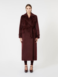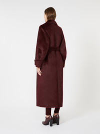 DETAILS Maxi robe coat with wide, enveloping lines, characterised by a texture that is particularly soft to the touch. Long-nap wool and alpaca fabric coat Oversized with central slit at the back Classic lapel collar Long raglan sleeves with cuff straps Fastens with a matching belt Horizontal welt pockets with applied flap Lined COMPOSITION AND CARE Fabric 75% alpaca, 25% virgin wool; lining 100% viscose. Do not wash; do not bleach; do not tumble dry; cool iron; professionally dry clean perchloroethylene - mild process; do not wet clean.; do not iron the buttons.; protect buttons before washing.; contains non-textile parts of animal origin. Distributed by Max Mara S.r.l., registered office in Reggio Emilia (Italy), Via Giulia Maramotti 4, 42124 (IT)