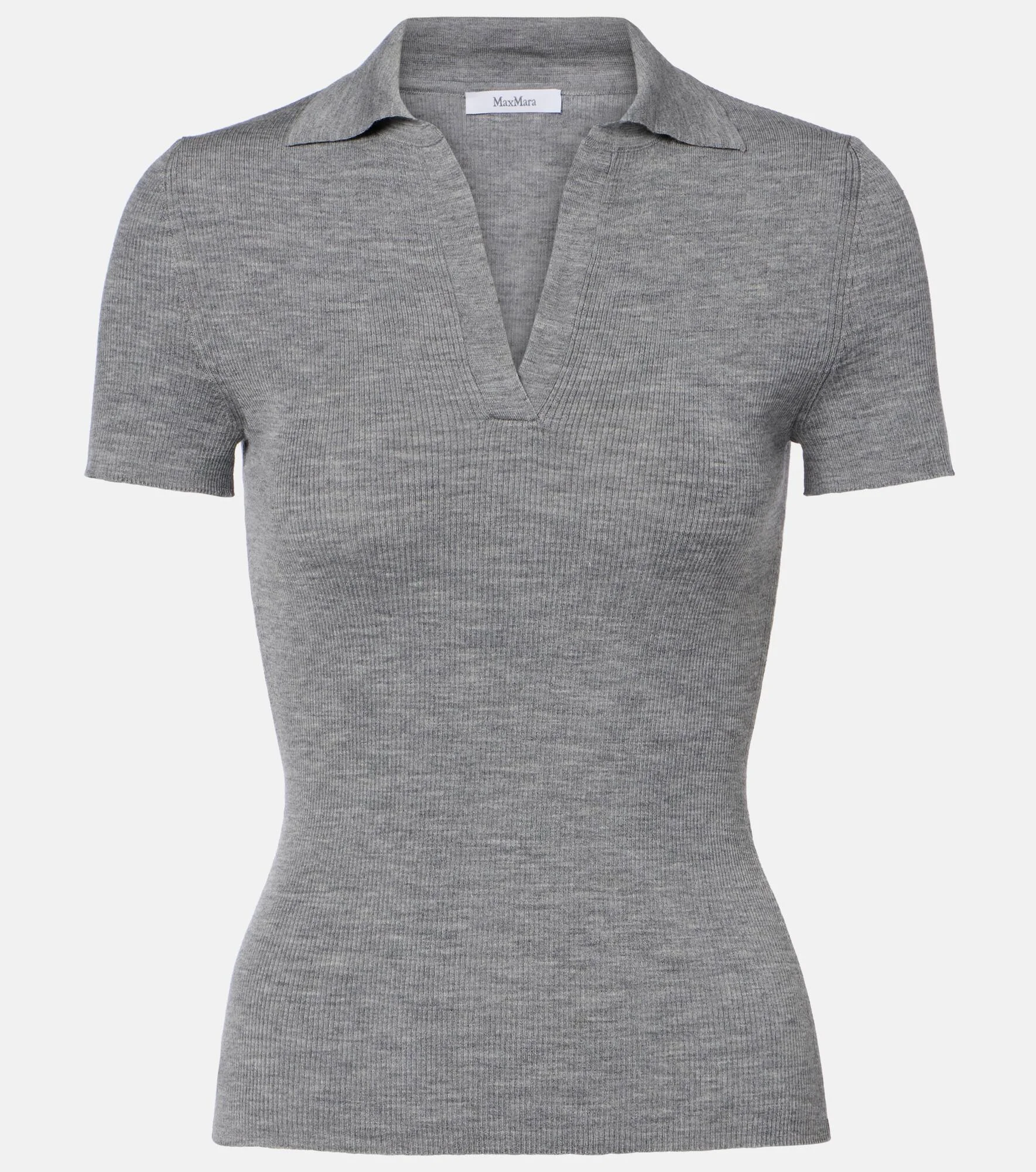 This Albero polo shirt from Max Mara is made of virgin wool with a ribbed-knit finish. The design showcases a fitted silhouette and a flattering buttonless front. Product Details - Material: 100% virgin wool - Care instructions: hand wash - Made in Romania - Color: beige - Designer color name: Grigio Chiaro - Item number: P01120761 Size & Fit - True to size - Cinched waist - Stretchy fabric - The model seen in the picture is 178cm-5'10" and wearing a size XS