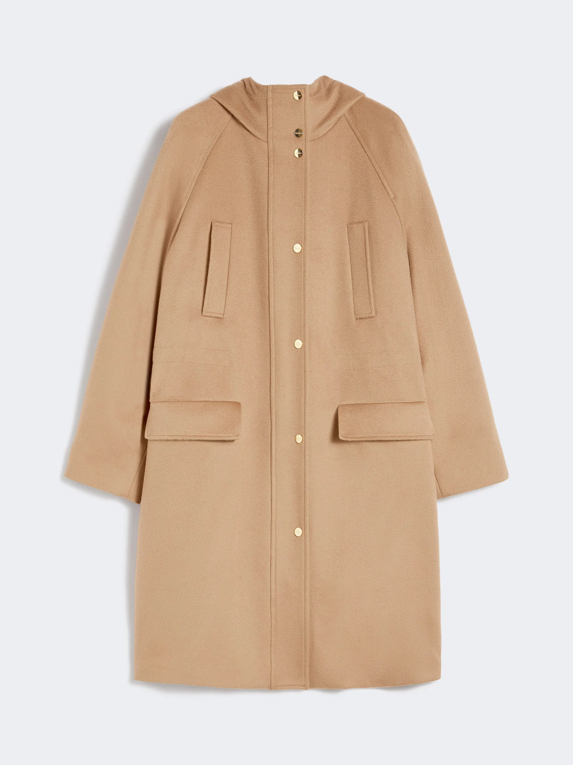 DETAILS Functional parka featuring a technical design and enveloping silhouette. Crafted from pure virgin wool, enhanced by a removable quilted inner lining padded with Luxepad insulation. Pure wool broadcloth parka Wraparound fit with adjustable drawstring waist Elegant women's parka with built-in windproof hood Long raglan sleeves with button-tab cuffs Concealed front zip fastening with branded press-studs Hand-warmer pockets and flap patch pockets at front COMPOSITION AND CARE Coat fabric 100% virgin wool; lining 100% polyamide. Quilted coat fabric 100% polyamide; with quilting in 49% polyester, 46% camelwool, 5% silk; lining 100% polyamide; - exclusive of decoration. Coat: do not wash; do not bleach; do not tumble dry; cool iron; professionally dry clean perchloroethylene - mild process; do not wet clean.; Do not iron the buttons.; Protect the ends stoppers and/or the cord ends before washing. Quilted coat: hand wash cold (40°c max); do not bleach; do not tumble dry; line drying in the shade; do not iron; professionally dry clean perchloroethylene - mild process; do not wet clean. Distributed by Max Mara S.r.l., registered office in Reggio Emilia (Italy), Via Giulia Maramotti 4, 42124 (IT)