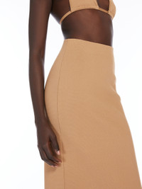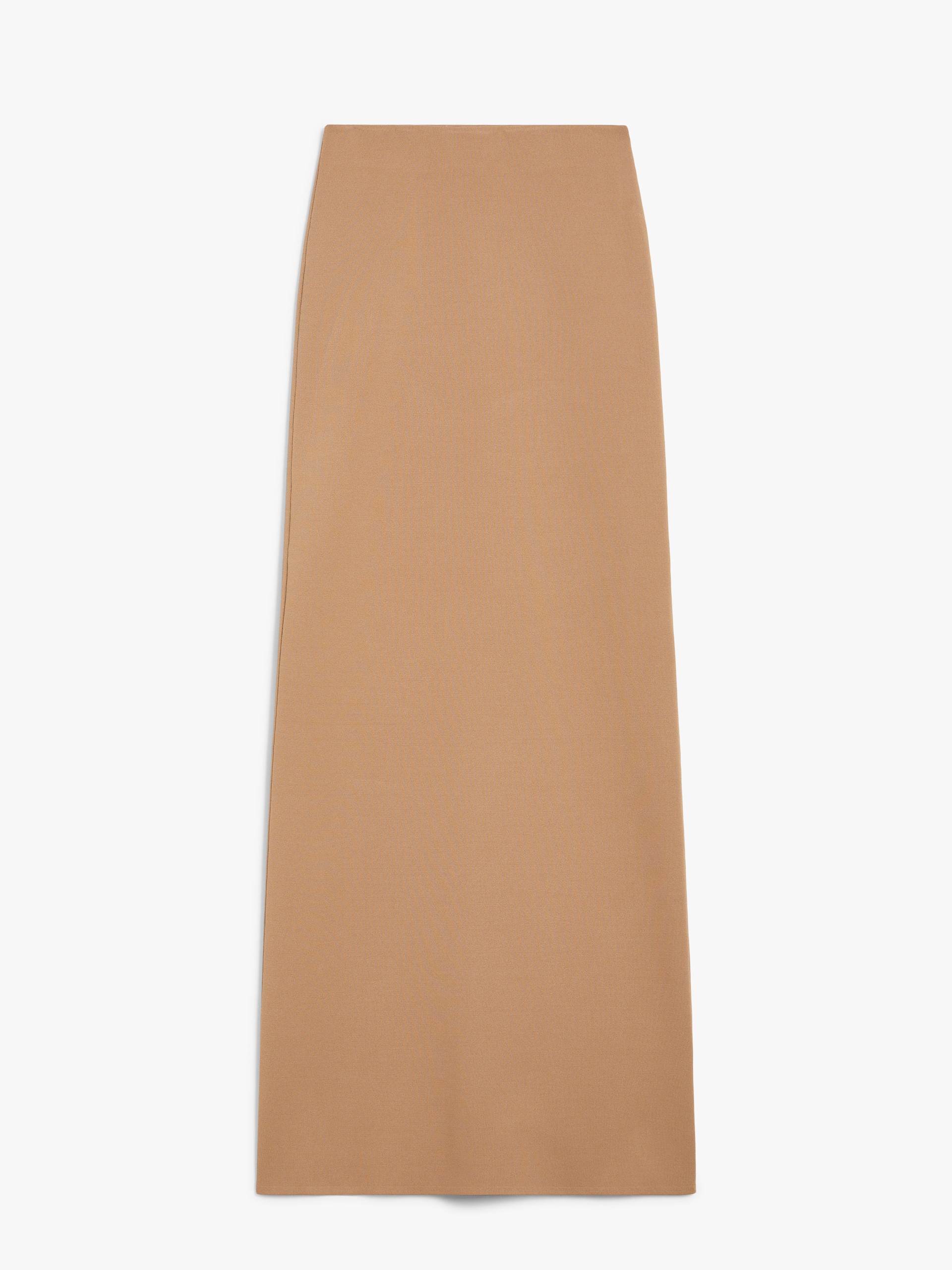 DETAILS Long skirt in stretch viscose crepe yarn, in fabric stitch knit. Close-fitting garment with elasticated waist. COMPOSITION AND CARE 75% viscose, 25% polyester. Hand wash cold; do not bleach; do not tumble dry; flat drying in the shade; cool iron; professionally dry clean perchloroethylene - mild process; do not wet clean.; iron with a cloth between.; using neutral detergent. Distributed by Max Mara S.r.l., registered office in Reggio Emilia (Italy), Via Giulia Maramotti 4, 42124 (IT)