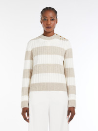 DETAILS Cropped jumper in luxurious blend of wool and cashmere yarn, with a round neckline and long sleeves. The style features a flat-rib knit and sailor-style gold-coloured metal knot buttons on the left shoulder. Ribbed trim. COMPOSITION AND CARE 70% wool, 30% cashmere. Hand wash cold; do not bleach; do not tumble dry; flat drying in the shade; cool iron; professionally dry clean perchloroethylene - mild process; do not wet clean.; iron with a cloth between.; using neutral detergent. Distributed by Max Mara S.r.l., registered office in Reggio Emilia (Italy), Via Giulia Maramotti 4, 42124 (IT)