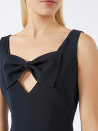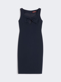 DETAILS Midi dress with a deep V-neck front and a couture bow. - Cady dress - Shaped lines with seams that highlight the silhouette - Sleeveless - Invisible zip fastening on the back - Centre slit on the back - Lined COMPOSITION AND CARE Fabric 71% triacetate, 29% polyester; lining 70% acetate, 30% polyester. Machine wash cold delicate cycle; do not bleach; do not tumble dry; line drying in the shade; cool iron; professionally dry clean perchloroethylene - mild process. Distributed by Max Mara S.r.l., registered office in Reggio Emilia (Italy), Via Giulia Maramotti 4, 42124 (IT)