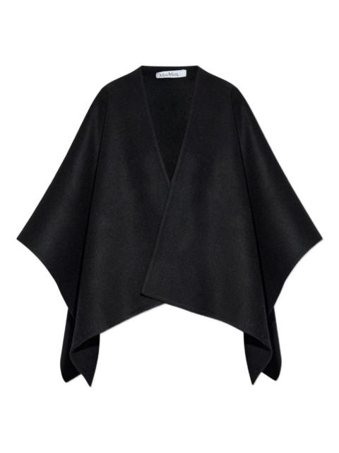Black alpaca and wool cape with rectangular design to wear closed with a pin or open with maxi lapels. Maxi label Max Mara in the corner. product code: 2524546081600005 SERRA COMPOSITION 55% alpaca, 25% polyamide, 20% wool. MADE IN ITALY