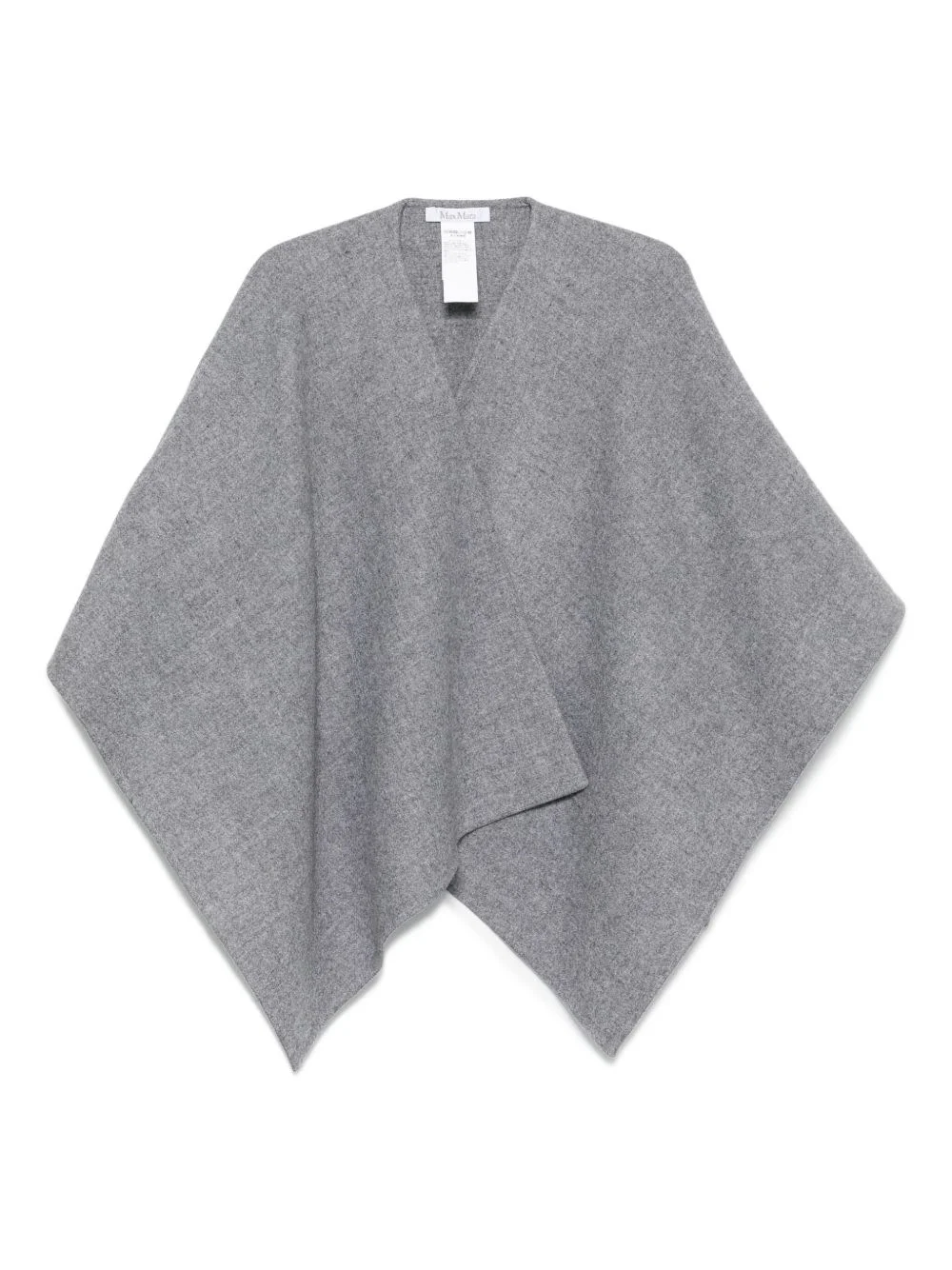 Grey alpaca and wool cape with a rectangular design to wear closed with a pin or open with maxi lapels. Maxi label Max Mara in the corner. product code: 2524546081600004 SERRA COMPOSITION 55% alpaca, 25% polyamide, 20% wool. MADE IN ITALY