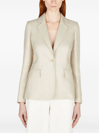 single-breasted linen blazer Highlights - Beige - Button fastening - Notched lapels - Long sleeves - Buttoned cuffs - Straight hem Made in Italy Composition Linen/Flax 100% Washing instructions Read Manufacturer Guidelines