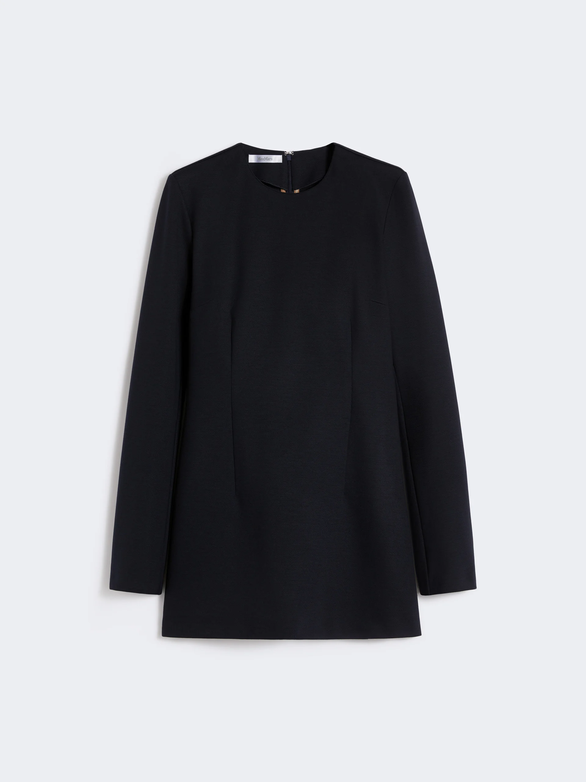 DETAILS Slim-fit short dress with darts sewn at the waist that define the silhouette. Dress in wool and cotton jersey and gabardine Figure-hugging Crew neck Long set-in sleeves Back concealed zip fastening Unlined COMPOSITION AND CARE 62% virgin wool, 33% cotton, 5% elastane. Hand wash cold (40°c max); do not bleach; do not tumble dry; flat drying in the shade; cool iron; professionally dry clean perchloroethylene - mild process; do not wet clean.; iron with a cloth between.; using neutral detergent.; don’t rub.; turn the articles inside out before washing.; to be ironed on reverse. Distributed by Max Mara S.r.l., registered office in Reggio Emilia (Italy), Via Giulia Maramotti 4, 42124 (IT)