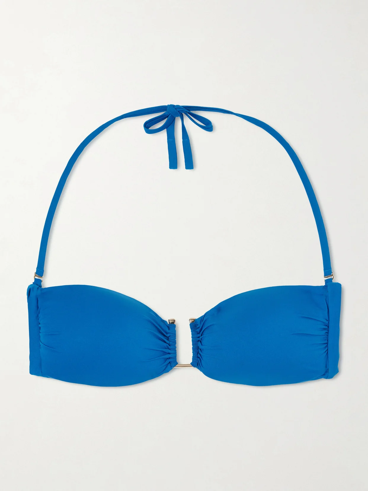 Max Mara's bikini top is designed in a streamlined bandeau silhouette with a sculptural U-shaped metal detail at the center. Made from smooth, quick-drying stretch fabric, it has removable padding and ties at the back for an adjustable fit.
