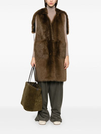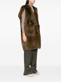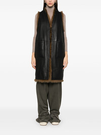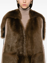 Amica coat Highlights - Chocolate brown - Shearling - Front hook and eye fastening - Reversible - Side a: - Detachable drawstring hood - Sleeveless - Two front patch pockets - Side b: - Sheepskin - Detachable drawstring hood - Sleeveless - Two front patch pockets - Mid-length Made in Italy Composition Sheep Skin/Shearling 100% SIZE & FIT FittingInformation Designed to be unstructured, offering a loose fit throughout Firm shearling has a treated construction offering some durability Washing instructions Do Not Wash/Do Not Dry Clean
