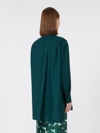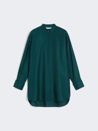 DETAILS Long, oversized shirt with yoke cut and double pleat on the back. Lightweight pure cotton satin shirt Mandarin collar Long sleeves with dropped shoulders Concealed front closure with visible top button Deep cuffs with cufflink button Rounded side slits Asymmetrical hem that is slightly longer at the back COMPOSITION AND CARE 100% cotton. Machine wash cold delicate cycle; do not bleach; do not tumble dry; line drying in the shade; cool iron; professionally dry clean perchloroethylene - mild process.; wash the garment while it is fastened.; do not iron the buttons.; protect buttons before washing.; turn the articles inside out before washing.; remove the cufflinks before washing. Distributed by Max Mara S.r.l., registered office in Reggio Emilia (Italy), Via Giulia Maramotti 4, 42124 (IT)