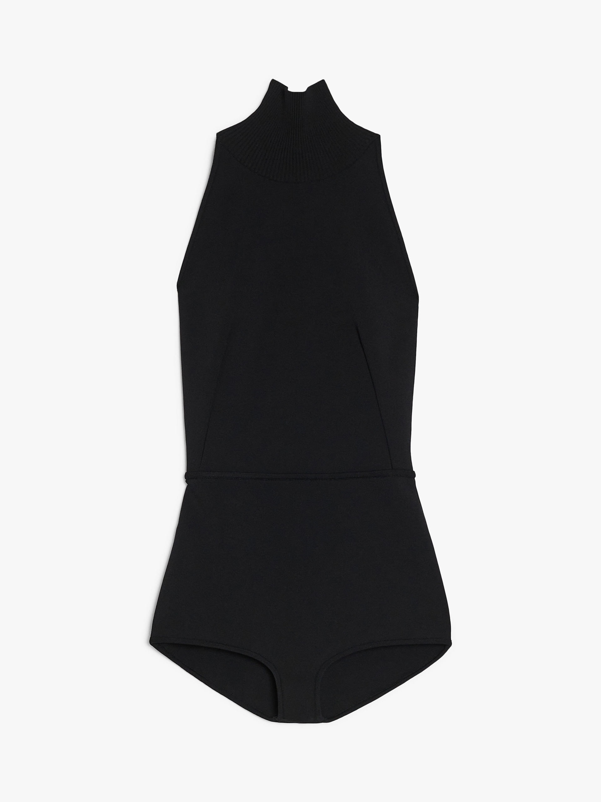 DETAILS Stretch viscose crepe jumper featuring a fitted silhouette with halterneck, bare back and high neck. COMPOSITION AND CARE 68% viscose, 23% polyester, 8% polyamide, 1% elastane. Hand wash cold; do not bleach; do not tumble dry; flat drying in the shade; cool iron; professionally dry clean perchloroethylene - mild process; do not wet clean.; iron with a cloth between.; using neutral detergent. Distributed by Max Mara S.r.l., registered office in Reggio Emilia (Italy), Via Giulia Maramotti 4, 42124 (IT)