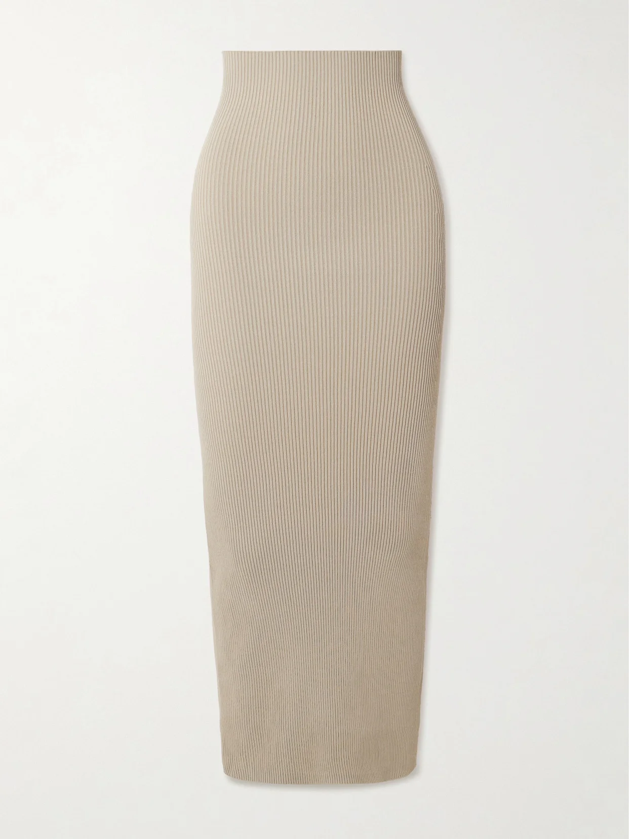 Max Mara's 'Aprile' skirt debuted on the Spring '25 runway, where it was styled with the 'Nereo' blazer, also in our edit. Made from ribbed-knit, it sits high on the waist and hugs your figure all the way to the maxi hem.