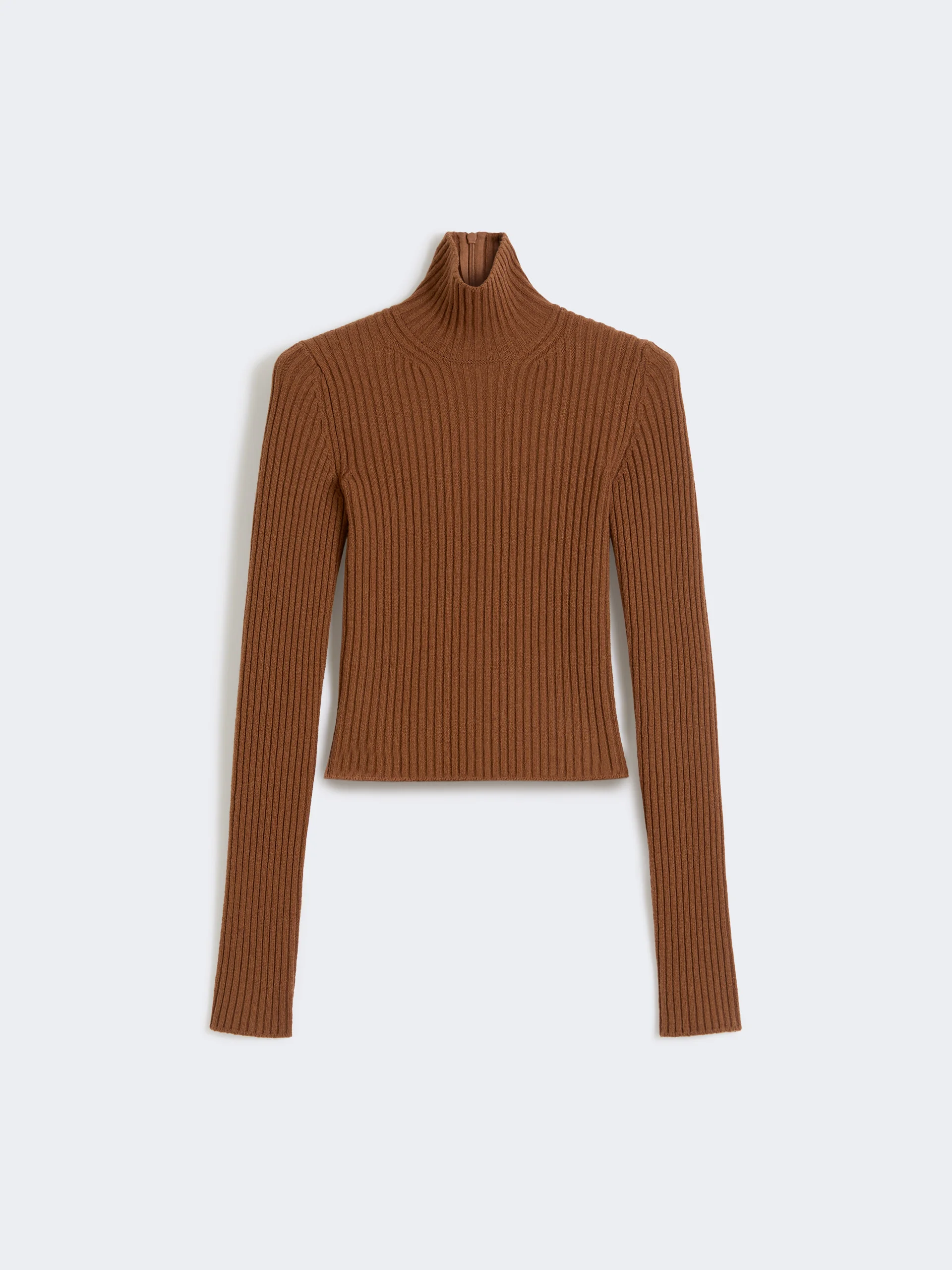 DETAILS Turtleneck jumper featuring a ribbed knit that accentuates the silhouette. Stretch wool and cashmere yarn turtleneck Figure-hugging High neck Long sleeves Half zip on the back of the neck with customised enamel slider COMPOSITION AND CARE 66% wool, 28% cashmere, 5% polyamide, 1% elastane. Hand wash cold (40°c max); do not bleach; do not tumble dry; flat drying in the shade; cool iron; professionally dry clean perchloroethylene - mild process; do not wet clean.; iron with a cloth between.; using neutral detergent. Distributed by Max Mara S.r.l., registered office in Reggio Emilia (Italy), Via Giulia Maramotti 4, 42124 (IT)