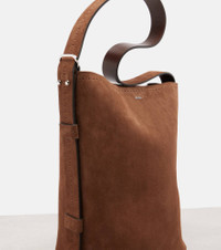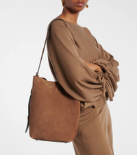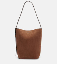 Boasting a rich manufacturing history, Max Mara represents the quintessence of Italian sophistication and expertise. The Archetipo Large tote bag is crafted from suede and comes with a detachable pouch. Product Details - Material: calf leather (suede) - Lining: lamb leather - Made in Italy - Designer color name: Castagno - Item color: brown - Closure: magnetic-tab fastening - Adjustable shoulder strap - Internal details: single compartment - Detachable zipped pouch - Includes: dust bag - Item number: P01039814 Size & Fit - Height 31cm-12" - Max. width 30cm-12" - Depth 16cm-6.5" - Length shoulder strap 69cm-27" - Clutch height 14,5cm-5.5" - Clutch width 23cm-9"