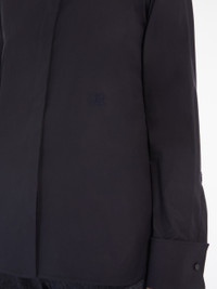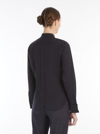 DETAILS Menswear-style, long shirt made of stretch cotton poplin. The garment features a mandarin collar, long sleeves with wide cuffs and cufflink buttons. Embellished with the M monogram logo embroidered in tone-on-tone thread on the front. Concealed button fastening at the front. COMPOSITION AND CARE 97% cotton, 3% elastane. Machine wash cold delicate cycle; do not bleach; do not tumble dry; line drying in the shade; cool iron; professionally dry clean perchloroethylene - mild process.; wash the garment while it is fastened.; turn the articles inside out before washing.; remove the cufflinks before washing.; contains non-textile parts of animal origin. Distributed by Max Mara S.r.l., registered office in Reggio Emilia (Italy), Via Giulia Maramotti 4, 42124 (IT)