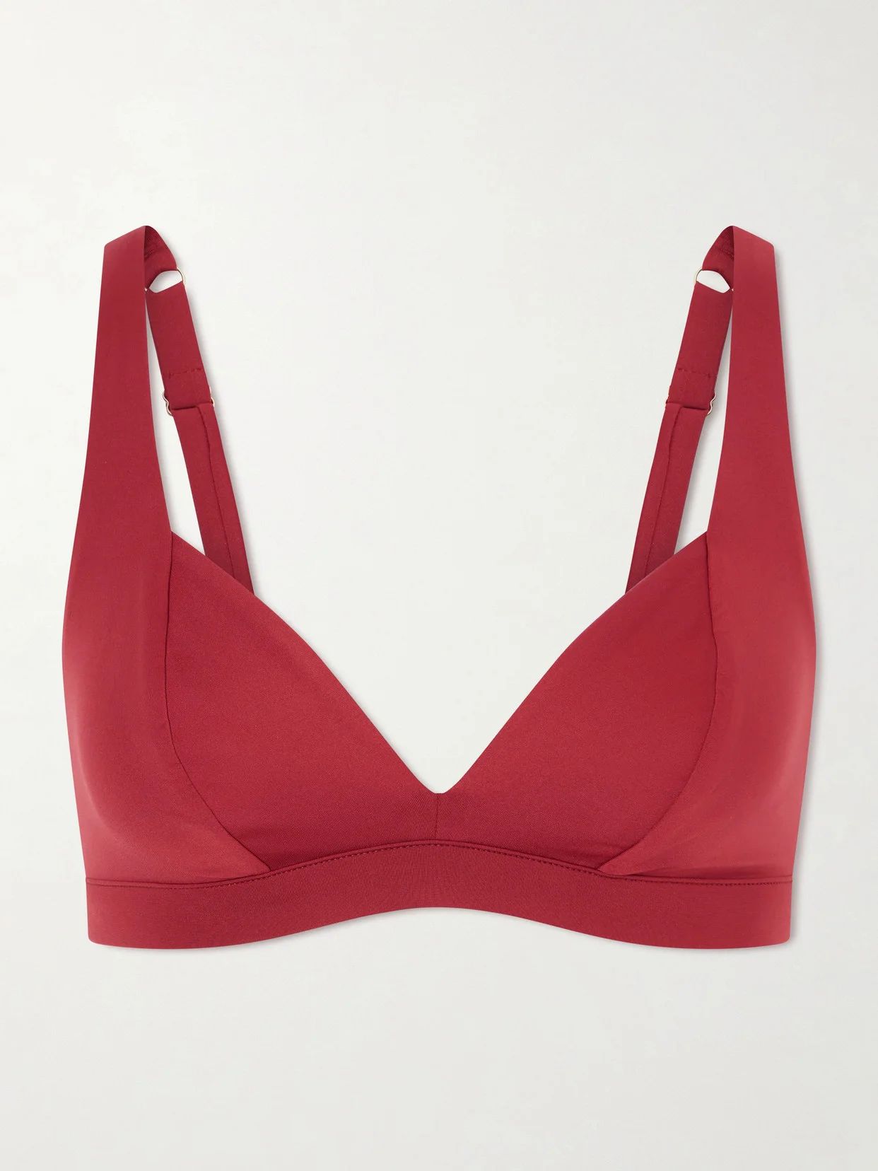 Max Mara's bikini top is designed in a clean, pared-back silhouette with softly contoured cups. Made from smooth stretch fabric, it offers light support while maintaining a streamlined fit.