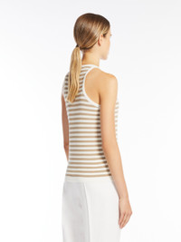 DETAILS Sleeveless top in pure cotton yarn. Halterneck style, finished with decorative stitch profiles and ribbed edge at the hem. COMPOSITION AND CARE 100% cotton. Hand wash cold; do not bleach; do not tumble dry; flat drying in the shade; cool iron; professionally dry clean perchloroethylene - mild process; do not wet clean.; iron with a cloth between.; using neutral detergent. Distributed by Max Mara S.r.l., registered office in Reggio Emilia (Italy), Via Giulia Maramotti 4, 42124 (IT)