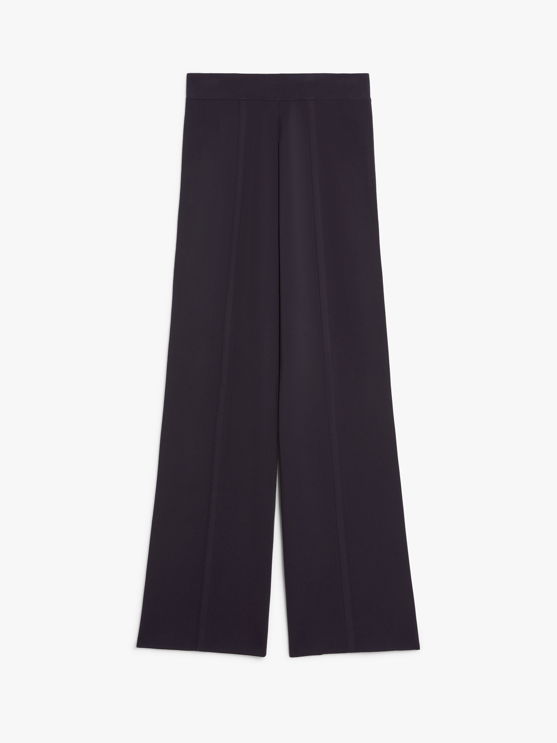 DETAILS Wide-leg trousers made of a viscose crepe interlock knit. The construction features an elasticated waist and wide legs with vertical seams at the centre front and back. COMPOSITION AND CARE 65% viscose, 35% polyamide. Hand wash cold; do not bleach; do not tumble dry; flat drying in the shade; cool iron; professionally dry clean perchloroethylene - mild process; do not wet clean.; iron with a cloth between.; using neutral detergent. Distributed by Max Mara S.r.l., registered office in Reggio Emilia (Italy), Via Giulia Maramotti 4, 42124 (IT)