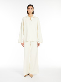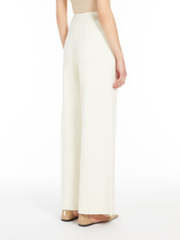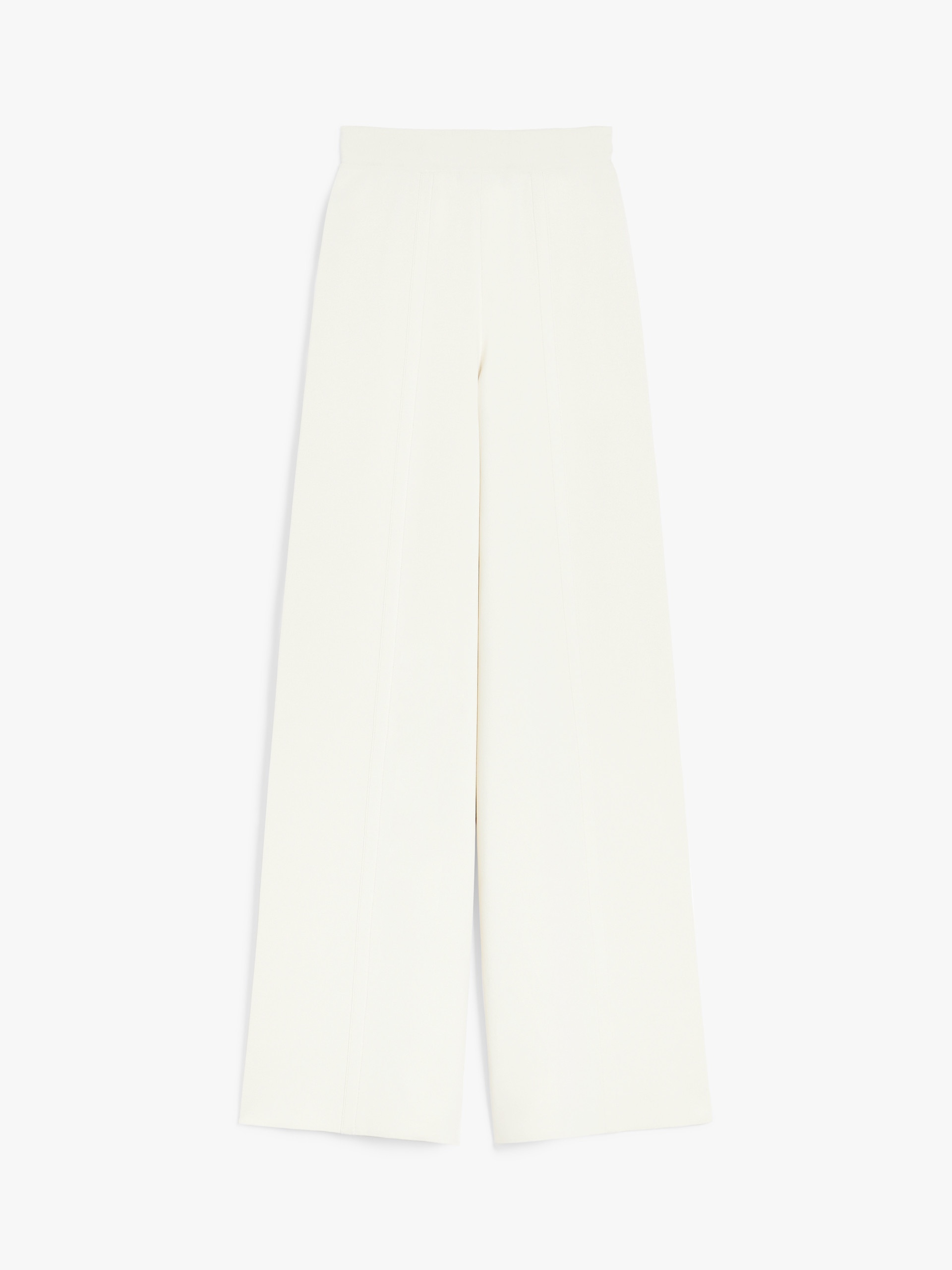 DETAILS Wide-leg trousers made of a viscose crepe interlock knit. The construction features an elasticated waist and wide legs with vertical seams at the centre front and back. COMPOSITION AND CARE 65% viscose, 35% polyamide. Hand wash cold; do not bleach; do not tumble dry; flat drying in the shade; cool iron; professionally dry clean perchloroethylene - mild process; do not wet clean.; iron with a cloth between.; using neutral detergent. Distributed by Max Mara S.r.l., registered office in Reggio Emilia (Italy), Via Giulia Maramotti 4, 42124 (IT)