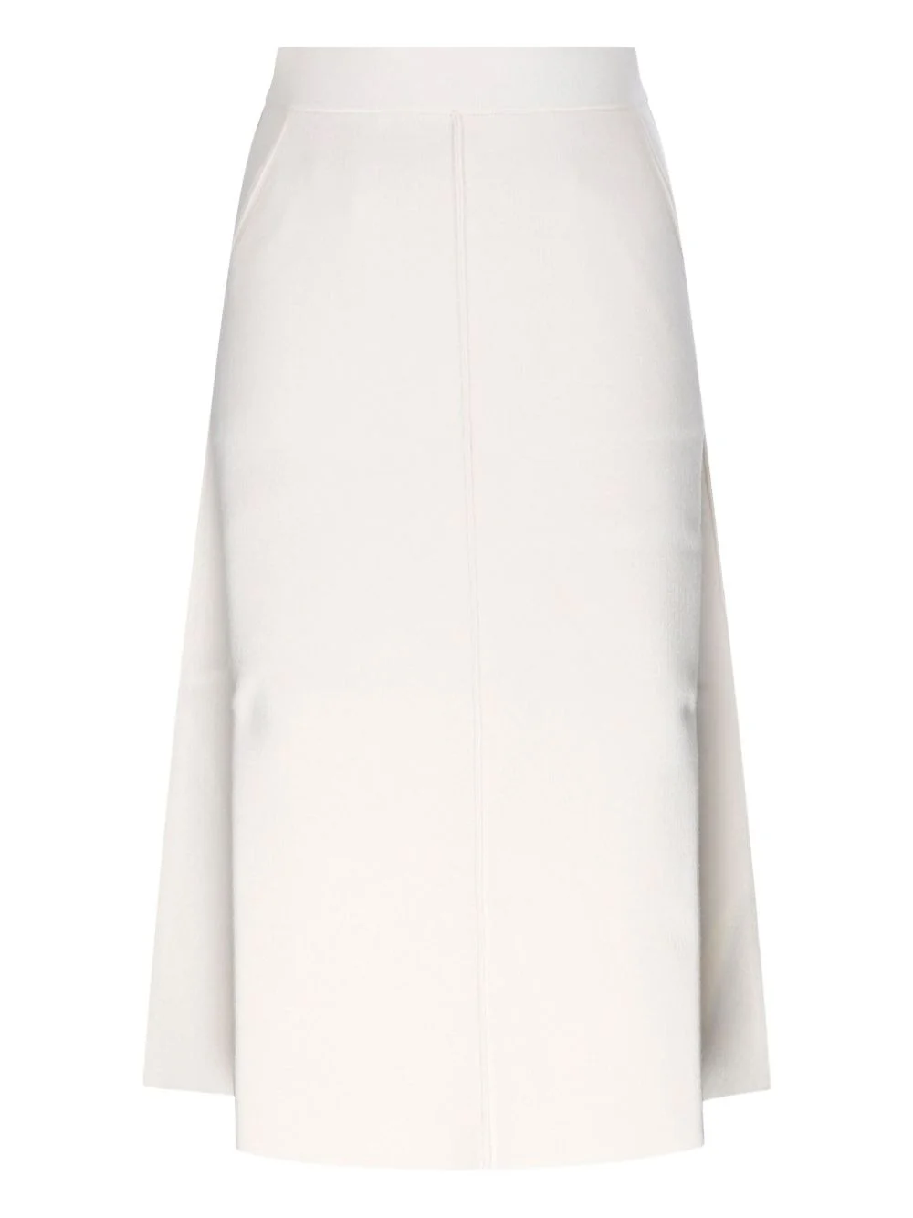 asymmetrical-hem midi skirt Highlights - Ivory - Flared hem - Elasticated waistband - Centre seam - Side pockets Made in Italy Composition Fabric 100% Washing instructions Read Manufacturer Guidelines