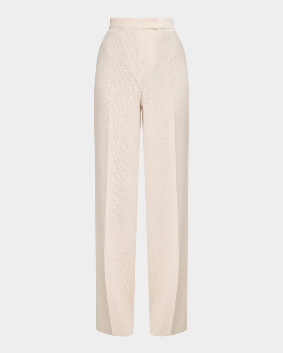 The "Attinia" trousers from Max Mara are cut from pure wool pique jersey in a distinctive wide-leg silhouette High-rise sits high on the hips Flat front Side slant pockets Front pressed pleats Full length Wide legs Hook-and-bar/zip fly Virgin wool Dry clean Made in Romania SIZE & FITModel measurements: 5 & apos;10" tallModel is wearing a US size 4/Small