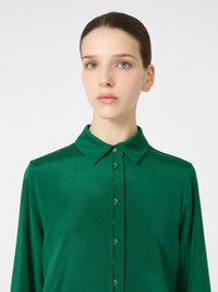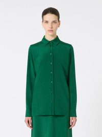 DETAILS Regular fit menswear inspired shirt. Stretch silk cady shirt Classic collar Long set-in sleeves with cuff and side button Mother-of-pearl button front fastening Yoke seam and central pleat on the back Alternating stitch pattern on front placket COMPOSITION AND CARE 93% silk, 7% elastane. Do not wash; do not bleach; do not tumble dry; cool iron; professionally dry clean perchloroethylene - mild process; do not wet clean.; wash the garment while it is fastened.; contains non-textile parts of animal origin. Distributed by Max Mara S.r.l., registered office in Reggio Emilia (Italy), Via Giulia Maramotti 4, 42124 (IT)