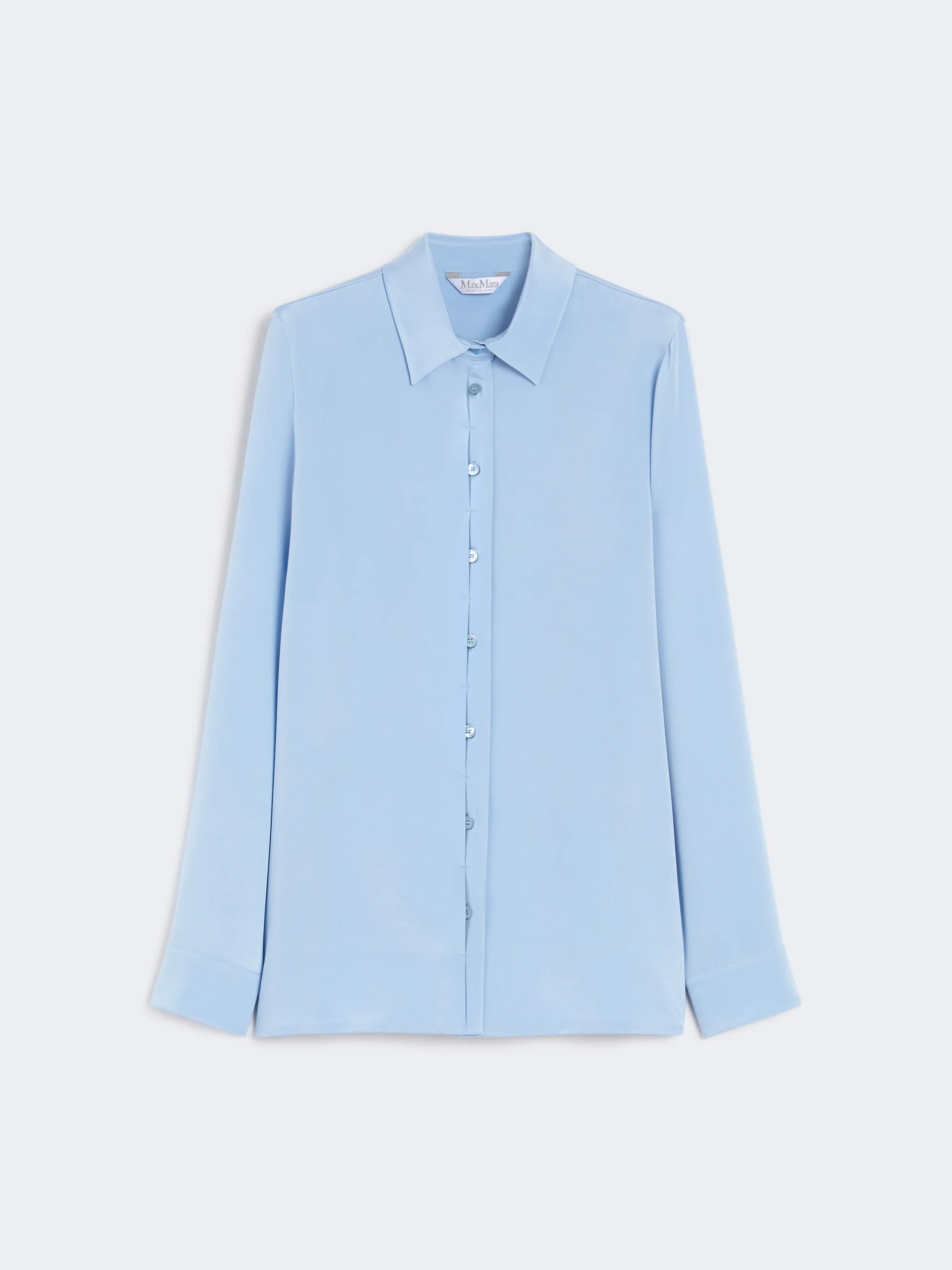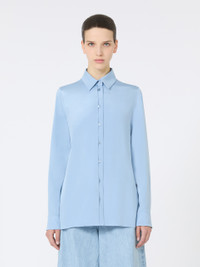 DETAILS Regular fit menswear inspired shirt. Stretch silk cady shirt Classic collar Long set-in sleeves with cuff and side button Mother-of-pearl button front fastening Yoke seam and central pleat on the back Alternating stitch pattern on front placket COMPOSITION AND CARE 93% silk, 7% elastane. Do not wash; do not bleach; do not tumble dry; cool iron; professionally dry clean perchloroethylene - mild process; do not wet clean.; wash the garment while it is fastened.; contains non-textile parts of animal origin. Distributed by Max Mara S.r.l., registered office in Reggio Emilia (Italy), Via Giulia Maramotti 4, 42124 (IT)