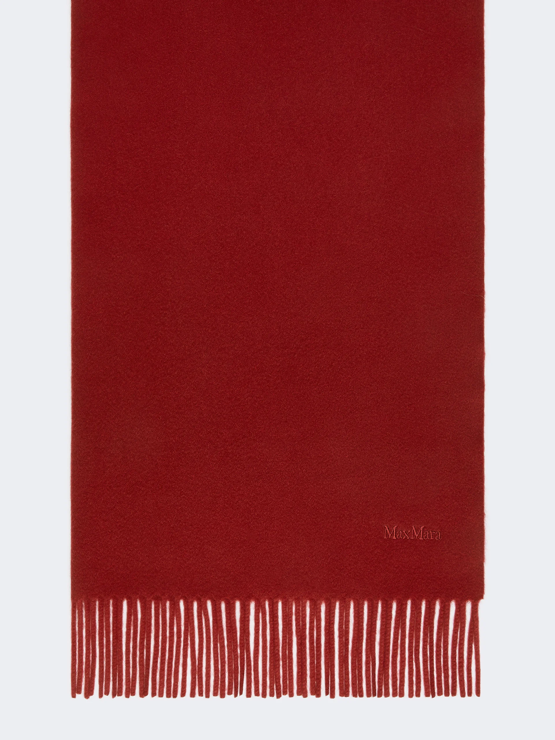 DETAILS Stole with characteristic monochrome design, embellished with delicate, tonal embroidered Max Mara lettering at the bottom. Stole in fine sable-look pure cashmere yarn Fringed shorter sides Size: 70 x 196 cm COMPOSITION AND CARE 100% cashmere. Do not wash; do not bleach; do not tumble dry; cool iron; professionally dry clean perchloroethylene - mild process; do not wet clean.; to be ironed on reverse.; to be ironed with no steam.; iron with a cloth between. Distributed by Max Mara S.r.l., registered office in Reggio Emilia (Italy), Via Giulia Maramotti 4, 42124 (IT)