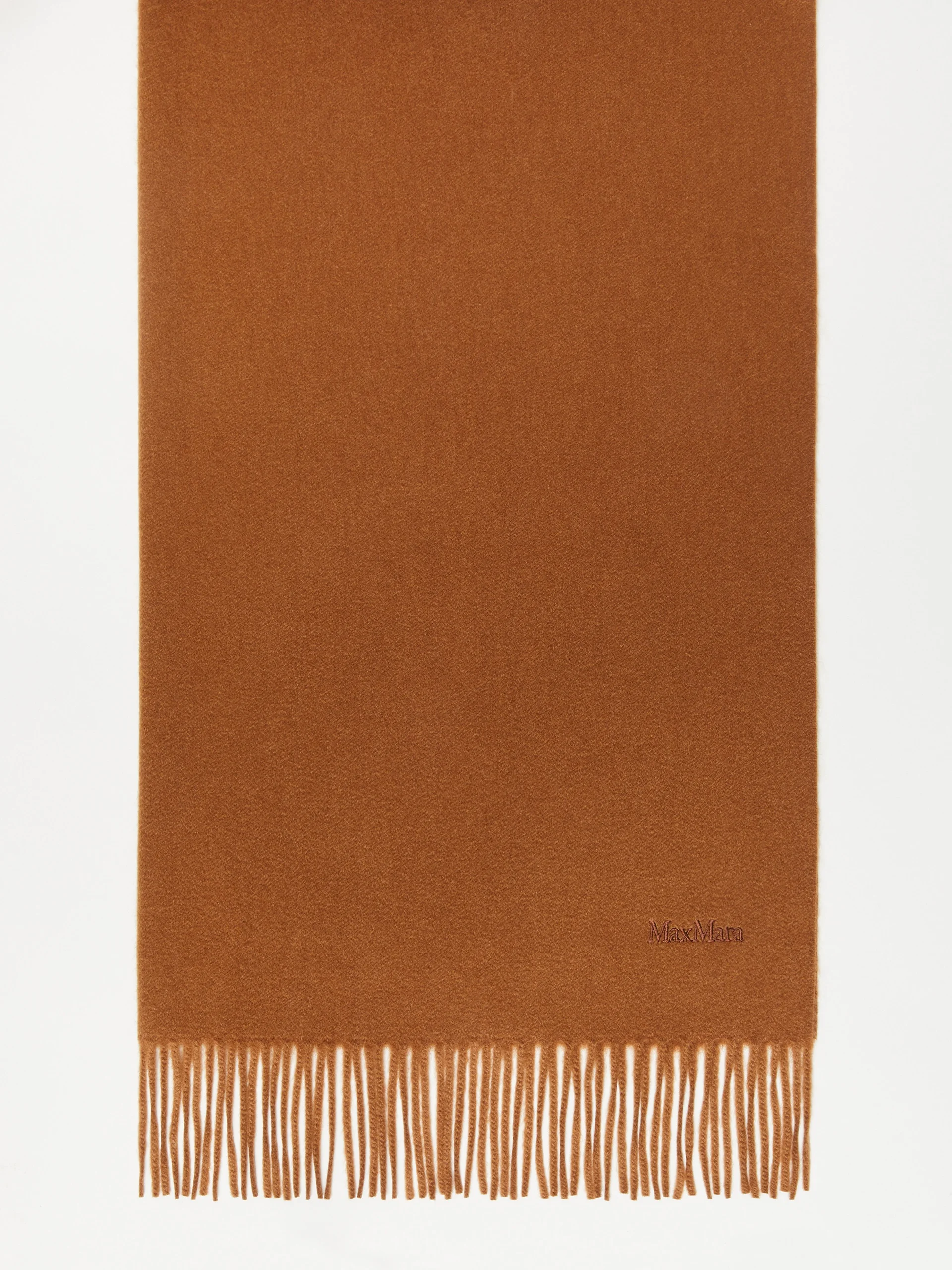 DETAILS Stole with characteristic monochrome design, embellished with delicate, tonal embroidered Max Mara lettering at the bottom. Stole in fine sable-look pure cashmere yarn Fringed shorter sides Size: 70 x 196 cm COMPOSITION AND CARE 100% cashmere. Do not wash; do not bleach; do not tumble dry; cool iron; professionally dry clean perchloroethylene - mild process; do not wet clean.; to be ironed on reverse.; to be ironed with no steam.; iron with a cloth between. Distributed by Max Mara S.r.l., registered office in Reggio Emilia (Italy), Via Giulia Maramotti 4, 42124 (IT)