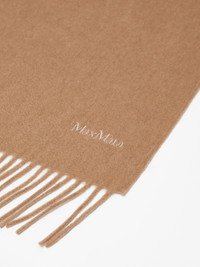 DETAILS Stole made of exquisite pure sable cashmere yarn. The monochromatic design is embellished with delicate embroidery at the hem that reproduces the Max Mara lettering in the same shades. Embellished with fringes on the short sides. Dimensions: 196 x 70 cm. COMPOSITION AND CARE 100% cashmere. Do not wash; do not bleach; do not tumble dry; cool iron; professionally dry clean perchloroethylene - mild process; do not wet clean.; to be ironed on reverse.; to be ironed with no steam.; iron with a cloth between. Distributed by Max Mara S.r.l., registered office in Reggio Emilia (Italy), Via Giulia Maramotti 4, 42124 (IT)