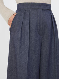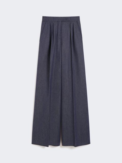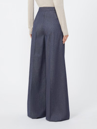 DETAILS Menswear-style trousers with double pleats on the front waist. Pure wool fabric trousers Wide leg Fastening with a wide waistband tab, zip fly and small hook Slant pockets at the sides Trouser crease COMPOSITION AND CARE 100% virgin wool. Do not wash; do not bleach; do not tumble dry; cool iron; professionally dry clean perchloroethylene - mild process; do not wet clean.; protect buttons before washing. Distributed by Max Mara S.r.l., registered office in Reggio Emilia (Italy), Via Giulia Maramotti 4, 42124 (IT)