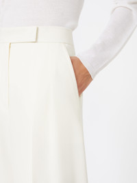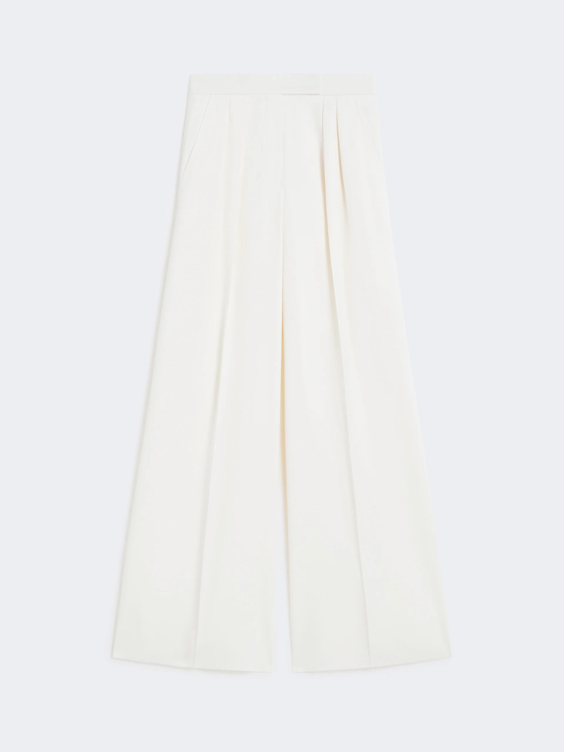 DETAILS Menswear-style trousers with double pleats on the front waist. Pure wool fabric trousers Wide leg Fastening with a wide waistband tab, zip fly and small hook Slant pockets at the sides Trouser crease COMPOSITION AND CARE 100% virgin wool. Do not wash; do not bleach; do not tumble dry; cool iron; professionally dry clean perchloroethylene - mild process; do not wet clean.; protect buttons before washing. Distributed by Max Mara S.r.l., registered office in Reggio Emilia (Italy), Via Giulia Maramotti 4, 42124 (IT)