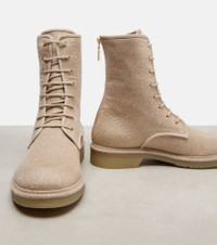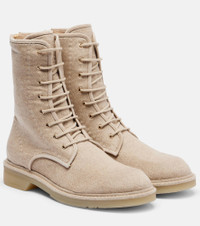 Boasting a rich manufacturing history, Max Mara represents the quintessence of Italian sophistication and expertise. Made in Italy from reinforced cashmere, the Baker combat boots are complete with gold-toned zipper fastenings at their backs. Product Details - Upper: cashmere - Lining: leather - Sole: leather insole, rubber sole - Toe shape: round toe - Made in Italy - Includes: shoe box, dust bag - Designer color name: Cacha Chiaro - Item color: beige - Hardware color: gold - Closure: zipped back - Item number: P01097584 Size & Fit - True to size - European sizes - 4cm-1.5" heel (size EU 38) - 2,5cm-1" platform (size EU 38)