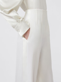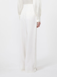 DETAILS Long trousers featuring a high-waisted silhouette with bustier details on the front and back. Pure wool gabardine trousers with an organza feel Straight cut Back concealed zip fastening Side inset pockets Welt pockets at the back Side bands in tone-on-tone satin Lined COMPOSITION AND CARE Fabric 100% virgin wool; lining 85% acetate, 10% silk, 5% polyamide. Do not wash; do not bleach; do not tumble dry; cool iron; professionally dry clean perchloroethylene - mild process; do not wet clean. Distributed by Max Mara S.r.l., registered office in Reggio Emilia (Italy), Via Giulia Maramotti 4, 42124 (IT)