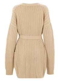 Balzac open-front cardigan Highlights - Ecru - Wool-cashmere blend - Open knit - Collarless - Belted waist - Two front patch pockets - Long sleeves - Ribbed cuffs and hem - Unlined - Straight hem Imported Composition Wool 70%, Cashmere 30% SIZE & FIT FittingInformation Designed to be unstructured, offering a loose fit throughout The tie fastening gives an adaptable and personalised fit Made with a midweight knit, this piece offers some stretch