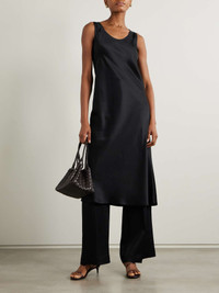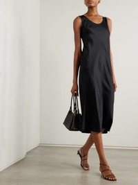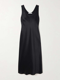 Max Mara’s effortless minimalism will always be in style. Modeled on a classic slip dress, this 'Banjo' style is made from panels of silk-satin that are cut on the bias for a beautiful drape. It skims the figure before falling to a floaty midi hem. Size & Fit - Fits true to size, take your normal size - Intended for a slightly loose fit - Lightweight, fluid, non-stretchy fabric - Model is 180cm/ 5’11” and is wearing a UK 8 Details & Care - Black silk-satin - Slips on - 100% silk - Dry clean