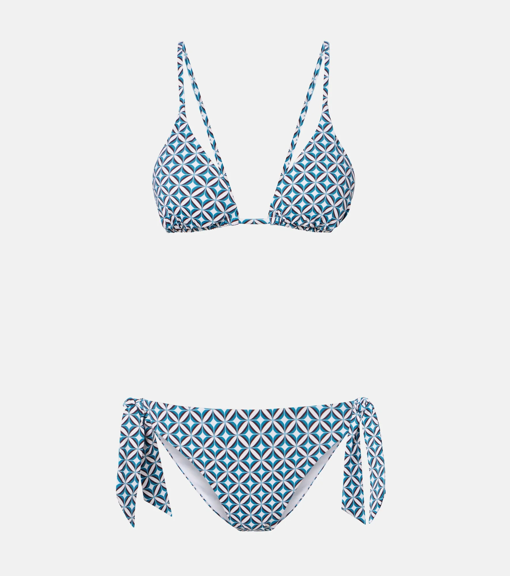 Boasting a rich manufacturing history, Max Mara represents the quintessence of Italian sophistication and expertise. Designed with an all-over geometric print, the Baobab bikini includes a classic triangle top and bottoms with self-tie sides. Product Details - Material: 85% polyamide, 15% elastane - Care instructions: hand wash - Made in Tunisia - Color: blue - Designer color name: St. Geometrica - Self-tie neck and back - Self-tie sides - Lining: 82% polyamide, 18% elastane - Removable cup padding - Includes: garment bag - Two-piece set - Item number: P01152782 Size & Fit - True to size - Removable padding - Minimal coverage - Medium-cut leg - The model seen in the picture is 178cm-5'10", cup size B, and wearing a size 1