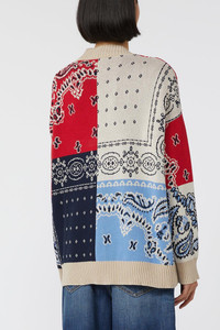 DETAILS AND INSIGHT Max Mara baobab sweater in navy jacquard. Knitted Cardigan Knitted Fabric 100% Cotton Hand Wash Cold Made In Ro Ship By Aug 7 Style 2525346051600-001