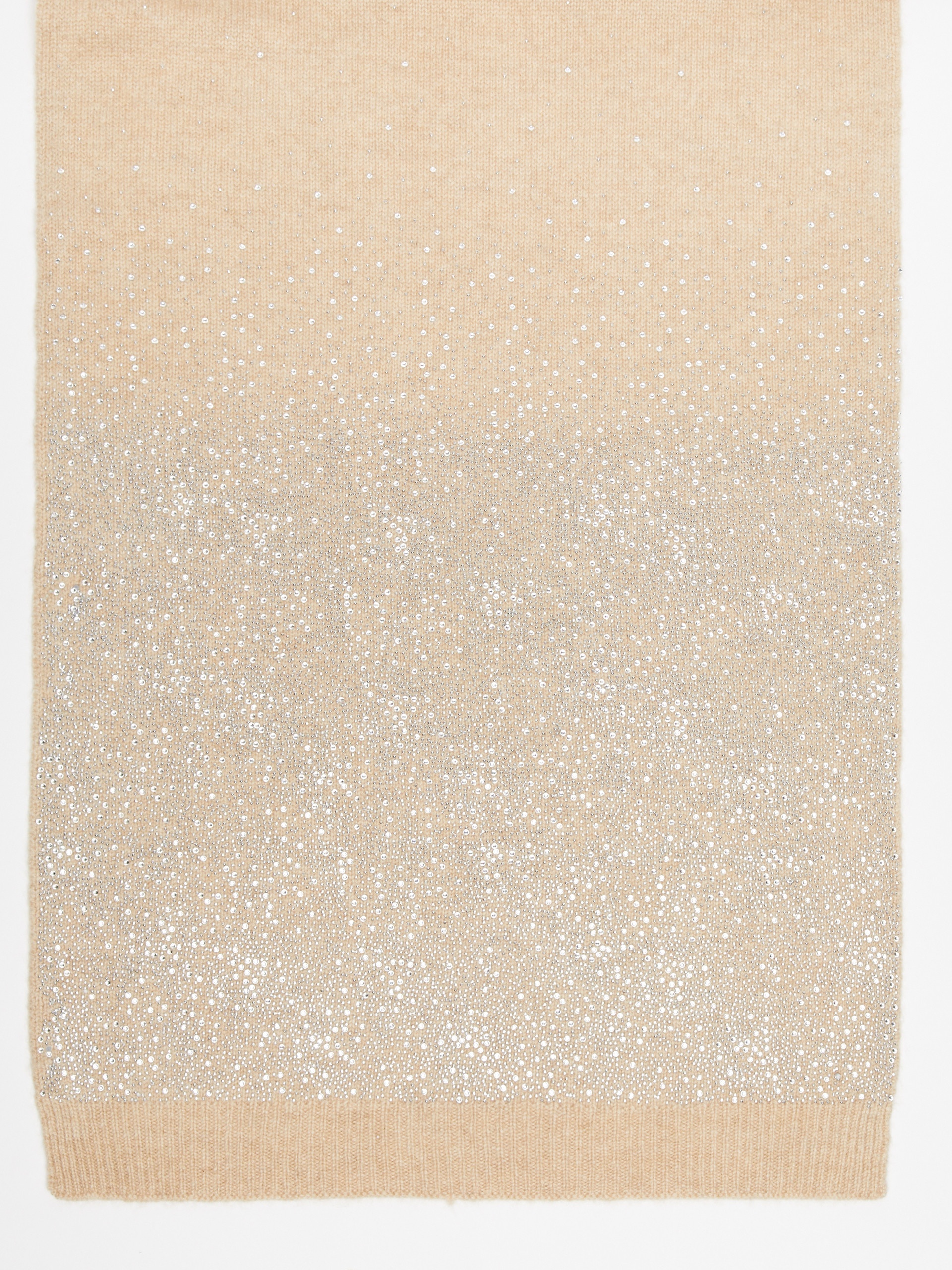 DETAILS Long scarf in fine pure cashmere yarn featuring nuanced-look all-over micro rhinestone-embroidered detail. Rib-knit trims. COMPOSITION AND CARE Knitted fabric 100% cashmere; with details in reconstituted quartz, metal. Hand wash cold; do not bleach; do not tumble dry; flat drying in the shade; do not iron; do not dry clean; do not wet clean. Distributed by Max Mara S.r.l., registered office in Reggio Emilia (Italy), Via Giulia Maramotti 4, 42124 (IT)